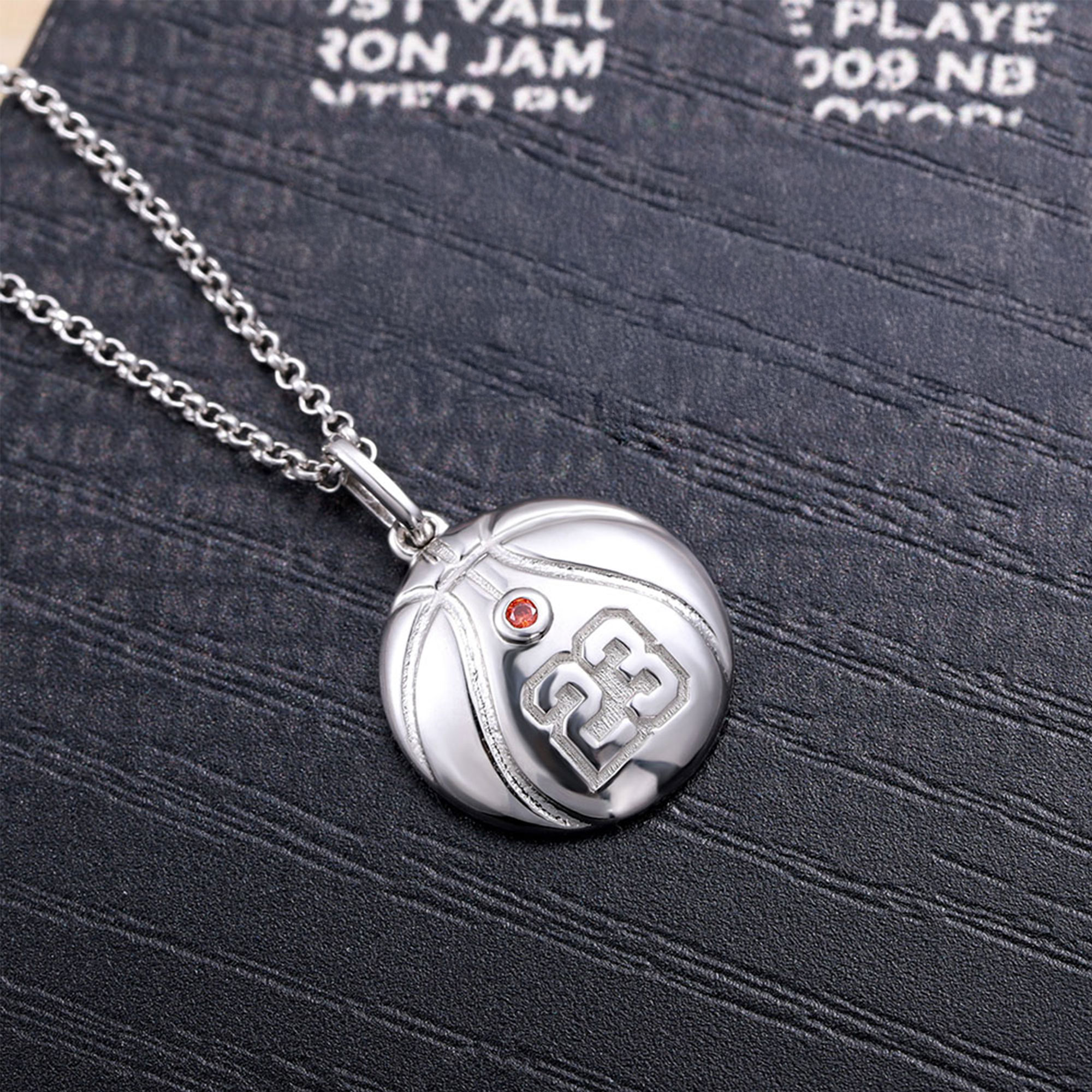 Silver Basketball Necklace with Engraved Number and Birthstone